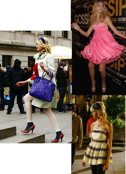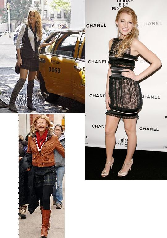 Otra de las protagonistas es Serena Van Der Woodsen(Blake Lively):Viste mucho mas informal en la serie,pero después es mucho mas clásica.A mi me encanta la combinación de falda de cuadros y cazadora de cuero…..